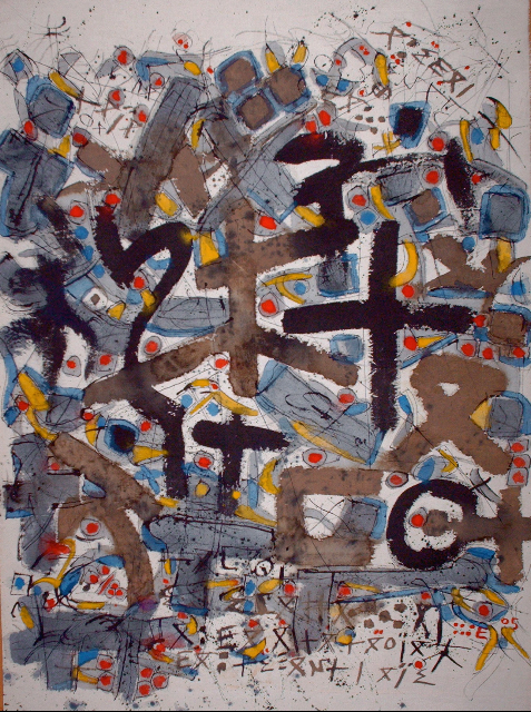 Et ceux-là [les signes] également ont été faits d’une rafale, ce qui renvoie ici à la tentative de relier, de baratter, de fusionner toutes les choses qui sont lovées au fond de mon âme, par le geste, par la couleur et le renouvellement de la couleur, et la diversité des formes et des voix.
